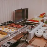 ארוחת הבוקר מוגשת כל בוקר במסעדה.